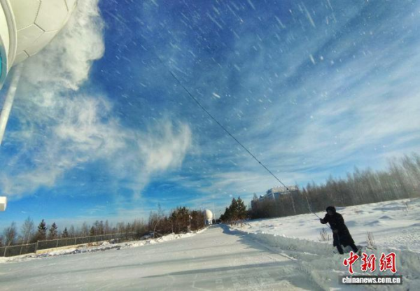 漠河站工作人员在冰天雪地的环境中工作。凯发k8空天院 供图